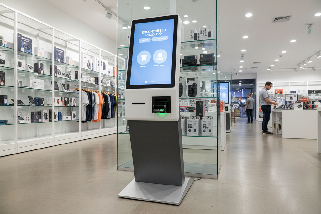 Eleve a eficiência do seu negócio com este Totem de Autoatendimento Interativo. Com design moderno e acabamento premium, este equipamento é a solução ideal para otimizar filas, realizar check-ins ou facilitar vendas rápidas de forma autônoma.